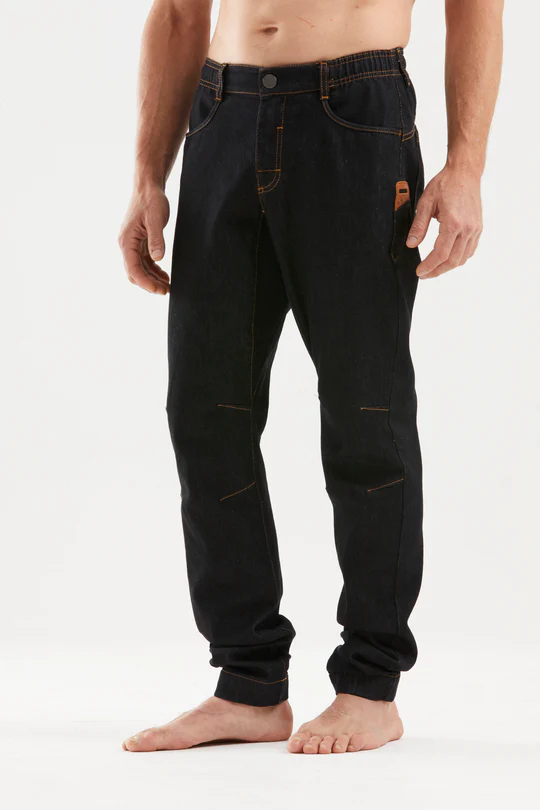 Designed for outdoor and climbing activities, APE9 DENIM features a unique inner elastic waistband for enhanced fit. It includes detailed embroidery on the right back pocket and an eco-leather bush holder patch. Offering a slim, skinny fit, these trousers prioritize maximum comfort and quality craftsmanship, proudly made in Italy.