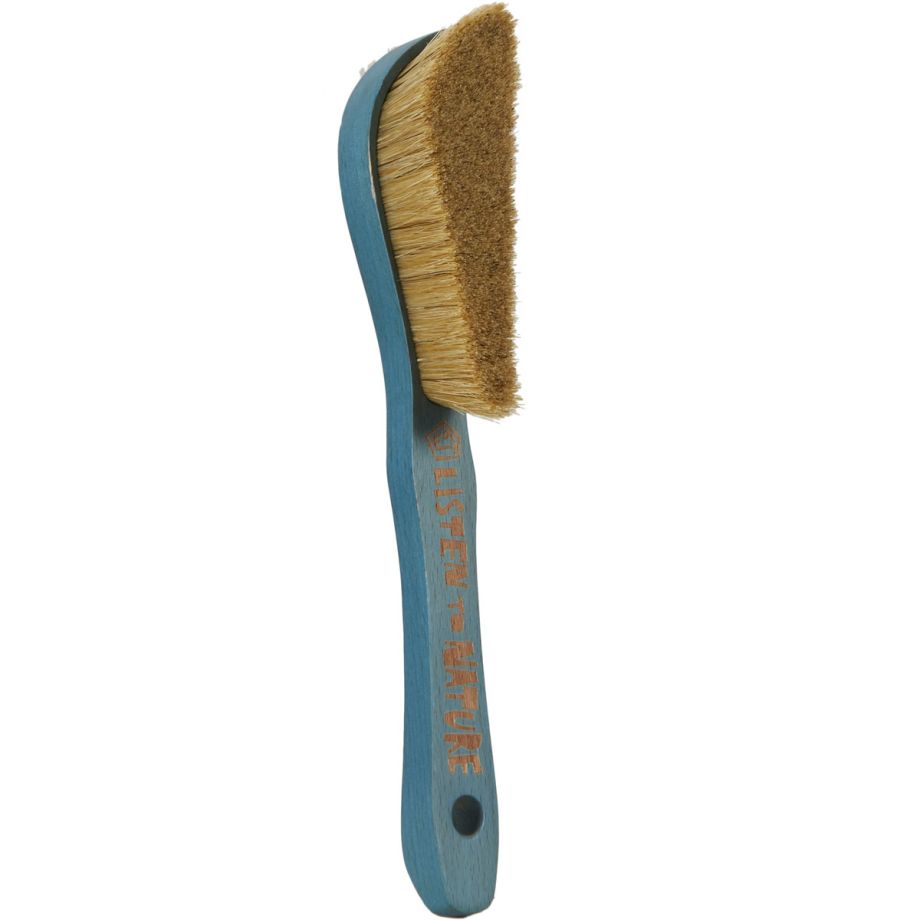 The E9 Sloppy Climbing Brush in Cyan is a premium big brush for climbers, featuring a wooden handle and dense natural bristels, designed to efficiently clean chalk and dirt from holds (especially slopers) in bouldering and sport climbing without damaging the rock, offering precision and durability.